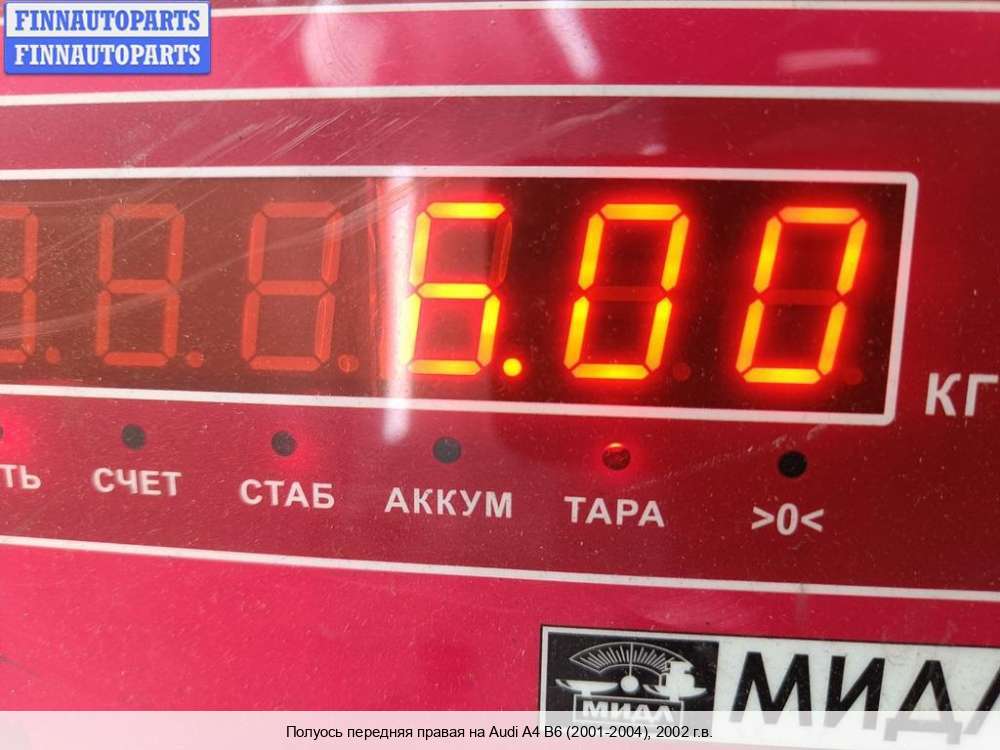 Компания FINNAUTOPARTS занимается продажей контрактных (б/у, бывших в употреблении) запчастей для иномарок. В нашей компании продаются только оригинальные запчасти из Европы, Японии и Кореи, которые не имеют пробега по РФ. Если вы хотите приобрести приводной вал (полуось в сборе) (передний правый) для а/м Ауди А4 Б6, смело обращайтесь в нашу компанию. Все наши менеджеры — профессионалы своего дела, и с удовольствием помогут вам купить запчасти, в том числе, приводные валы (полуоси в сборе) передние правые, на Audi A4 (8E/8H, B6) и другие автомобили.