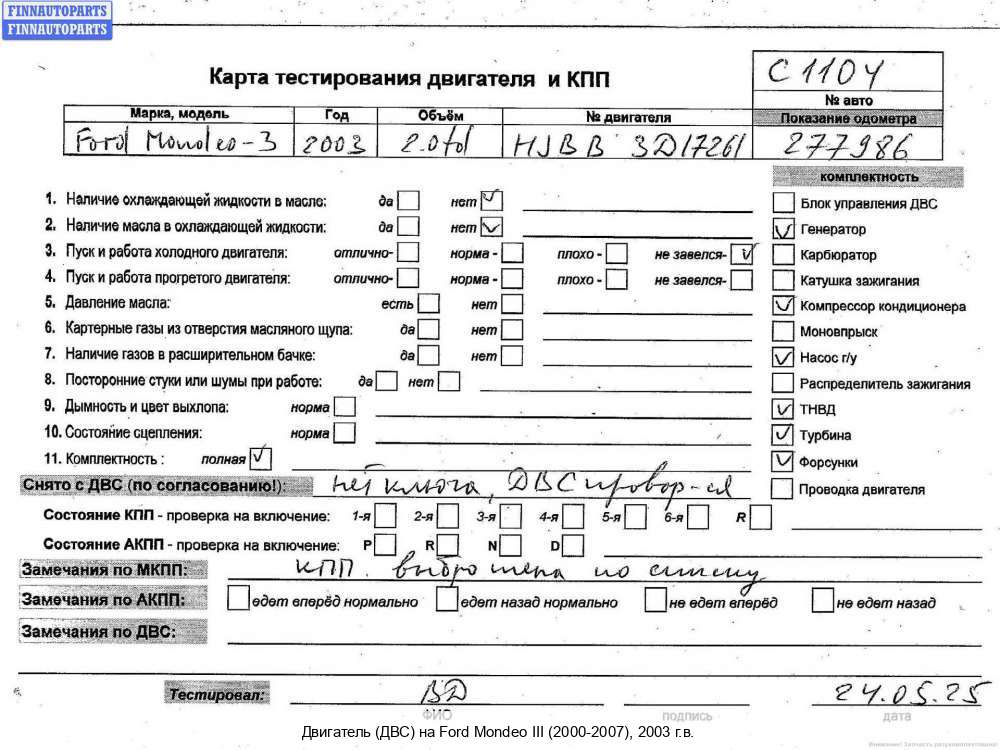 2004; Дизель; 2.0; HJBB, TDCI; Универсал; ; красный; 2004, 2л, Дизель, TDCI, HJBB, HJBB4Y66883, Универсал, красный, HJBB4Y66883 | - | Г | К | С | Н | КК | ТУ, прокручивается, состояние ГРМ - нормально, поддон - замят, клапанная крышка - нормально, эмульсия - нет, 2 массовый, нет щупа, бит разъём клапана EGR, бит датчик давления масла,,