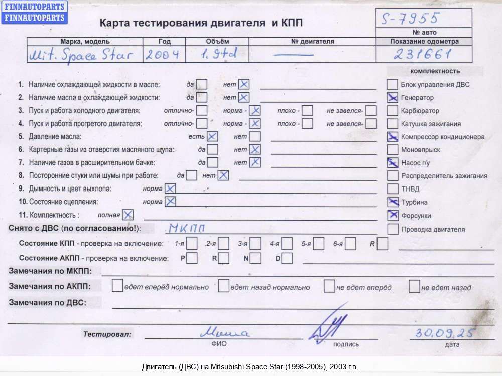 Компания FINNAUTOPARTS занимается продажей контрактных (б/у, бывших в употреблении) запчастей для иномарок. В нашей компании продаются только оригинальные запчасти из Европы, Японии и Кореи, которые не имеют пробега по РФ. Если вы хотите приобрести двигатель (ДВС) (дизельный) для а/м Митсубиси Спэйс Стар, смело обращайтесь в нашу компанию. Все наши менеджеры — профессионалы своего дела, и с удовольствием помогут вам купить запчасти, в том числе, двигатели (ДВС) дизельные, на Mitsubishi Space Star DG0 и другие автомобили.