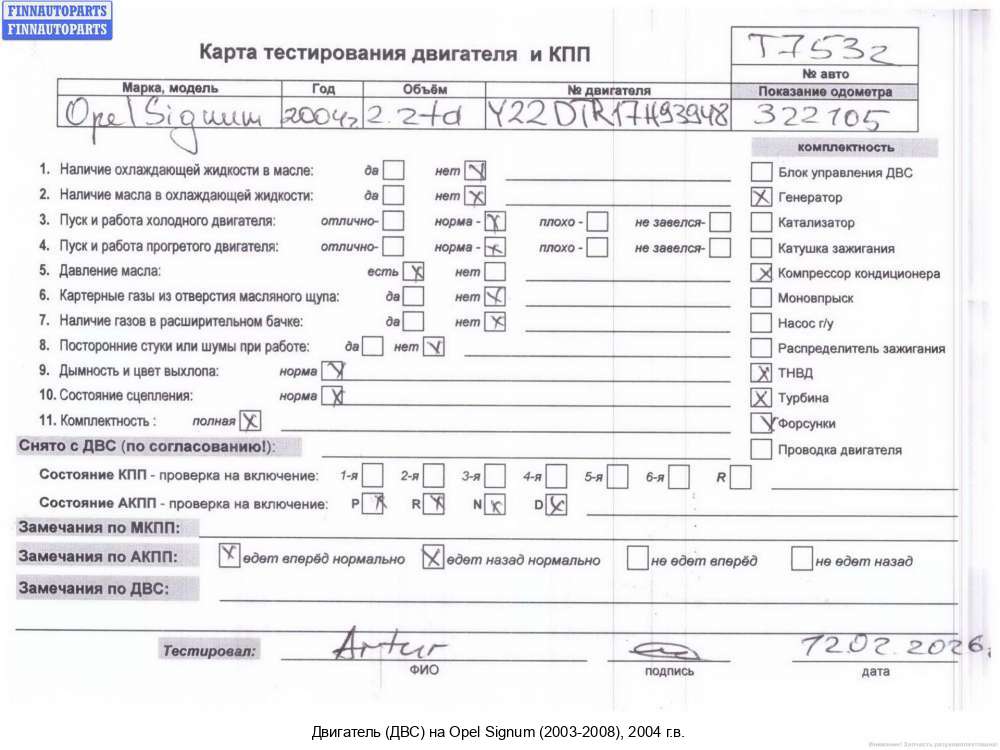 | Нижний Тагил | 2003 | 17F80994, 2003, 2.2л, Дизель, DTI, Y22DTR, Y22DTR17F80994, Y22DTR17F80994, Хэтчбэк 5 дв., серый, Y22DTR17F80994 | - | К | КК | ТУ, прокручивается, состояние ГРМ -нормально, поддон - нормально, клапанная крышка - нормально, эмульсия - нет, | |||