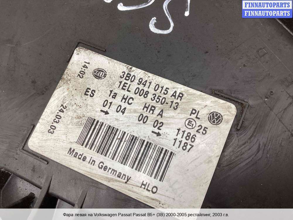 | Фара левая | Volkswagen Passat Passat B5+ (3B) 2000-2005 рестайлинг |