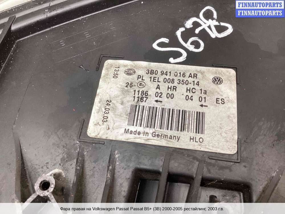 | Фара правая | Volkswagen Passat Passat B5+ (3B) 2000-2005 рестайлинг |